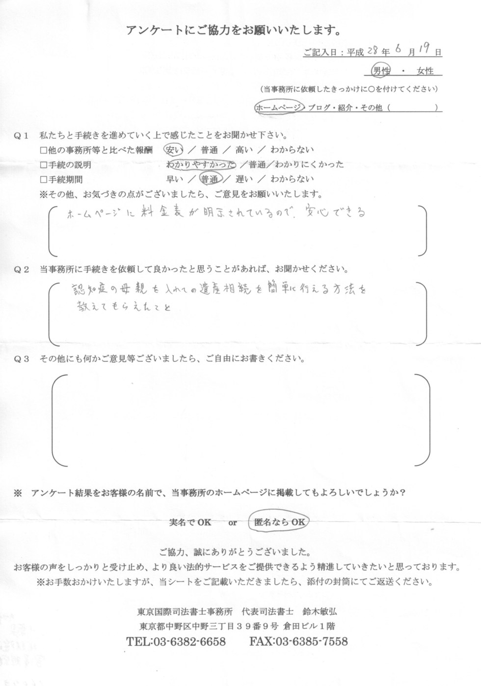 貴事務所に手続を依頼して良かったと思っています。